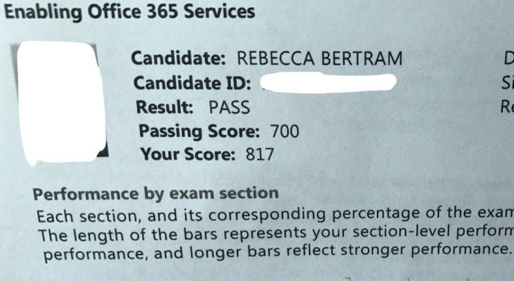 I’m happy to announce I just passed exam 70-347: Enabling Office 365 Services. This means I have now earned the certification of MCSA: Office 365 because I’ve previously passed exam 70-346: Managing Office 365 Identities and Requirements.