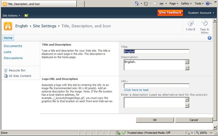 The new addition that I like is this: SharePoint will now easily keep track of various translations carried out on the same site. For instance, I can set the title and description and icon of my SharePoint site while I’m viewing it in English.