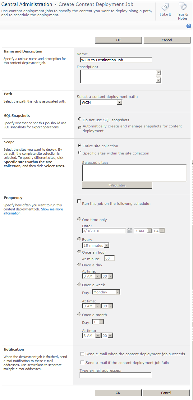 The purpose of this article is to show you the step by step process of setting up a content deployment job in SharePoint 2010.