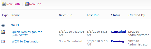 Once you have configured your jobs, you can view their statuses from the “Manage Content Deployment Jobs and Paths” page.