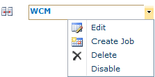 The next thing we need to do is to set up a timer job which will export on a regular basis the Site Collection data we defined in the path we just set up. You can easily create a new job by returning to the “Manage Content Deployment Paths and Jobs” page and selecting the drop down menu next to the Path you just created, and selecting “Create Job”.