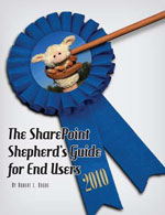 Rob Bogue is a SharePoint MVP who is well-known for one of the only published books out there written for SharePoint end-users (as opposed to the myriad of books written for developers or IT folks), called The SharePoint Shepherd’s Guide for End Users. (This book can actually be licensed in a digital edition as well, for use in corporate environments.) The SharePoint Shepherd’s Guide takes users through the step-by-step actions they need to take to perform particular tasks such as uploading a document to a library or adding a colleague to a My Site. It’s written in a reference manual way, so users can quickly look up the kind of task they want to execute and learn how to do it, rather than feeling like they need to sit down and read the book cover-to-cover before they can use a SharePoint site. Most of the tasks include numerous screen shots to guide users through the process.