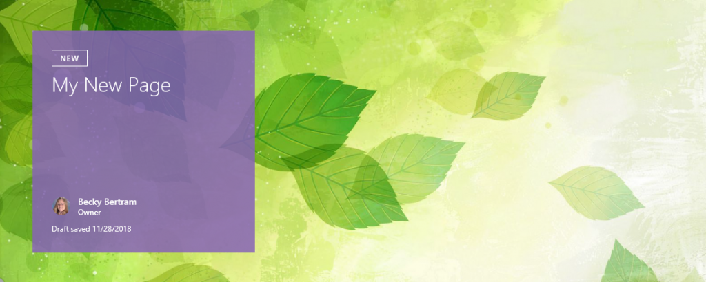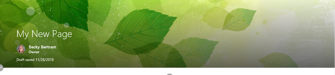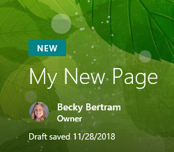 - Right below the title is a web part built right into the page that lets you specify a page owner. (This defaults to whomever created the page, just as has been the case with SharePoint Publishing Pages since 2007.) You can choose to remove the owner from the page if you don’t want the owner to show up below the title.