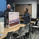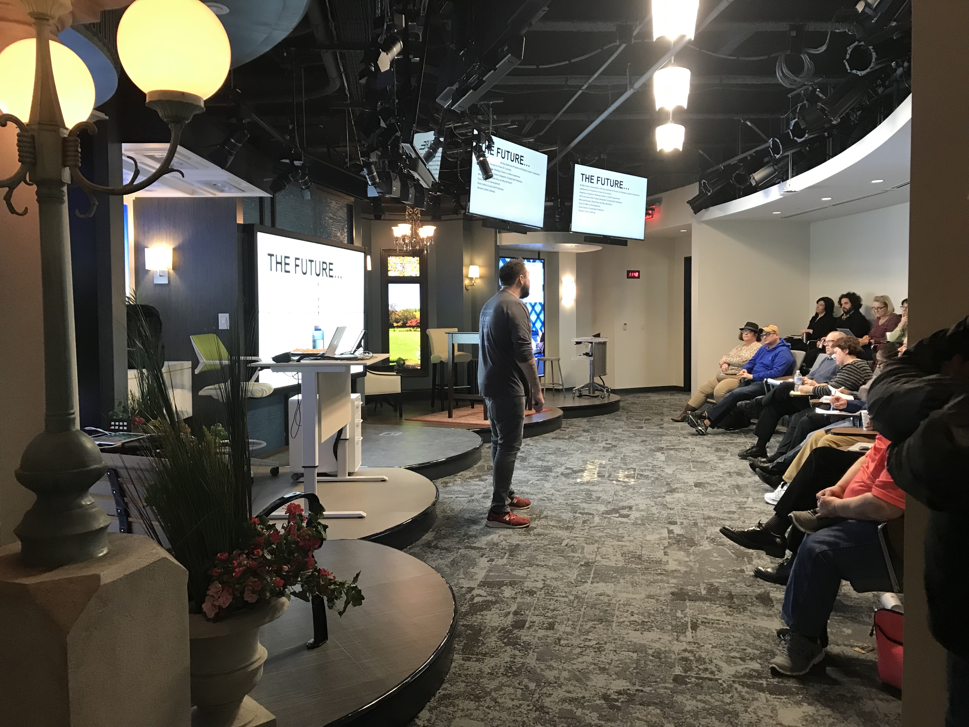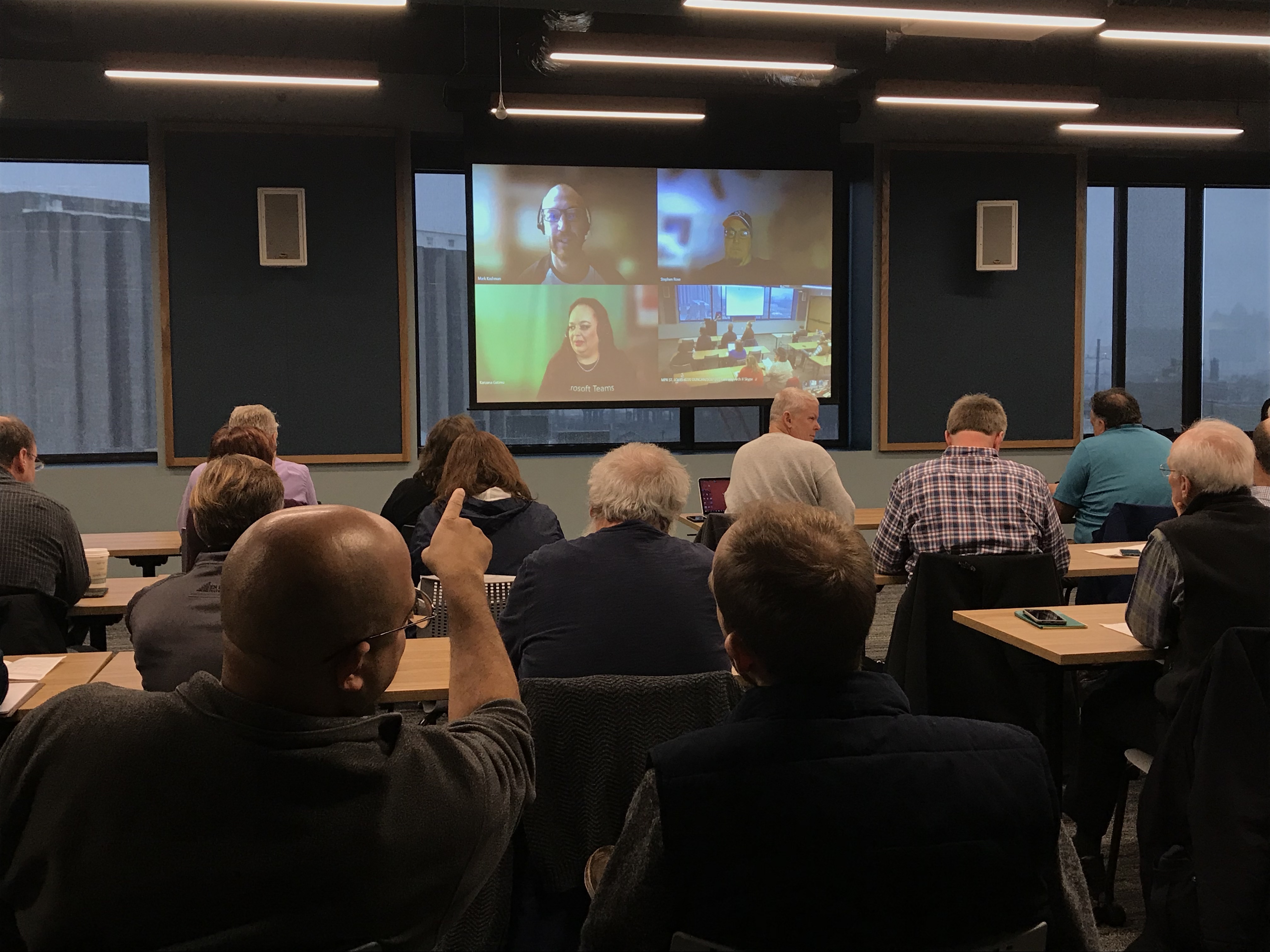 This last Saturday was St. Louis Office 365 Saturday, taking place for the first time in the newly constructed Microsoft Technology Center. In spite of the icy weather we still had about 120 people attend. Our keynote address was delivered by Mark Kashman (SharePoint), Karuana Gatium (Teams) and Stephen Rose (OneDrive) via a Teams meeting from Redmond. We were very happy with the presenters, facilities, food, and sponsors, and are already looking forward to doing it again next year. We even gave away $2K worth of raffle prizes. Here are some pictures for you.