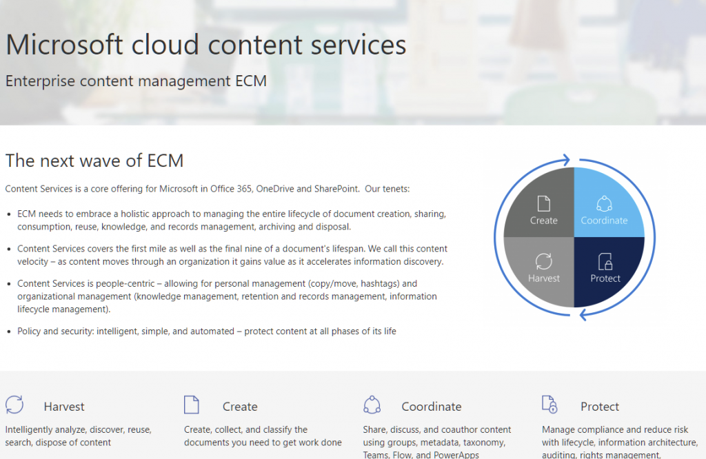 - Content Services/ECM: This page gives you an overview of the “next wave of ECM” (enterprise content management): https://resources.techcommunity.microsoft.com/content-services/