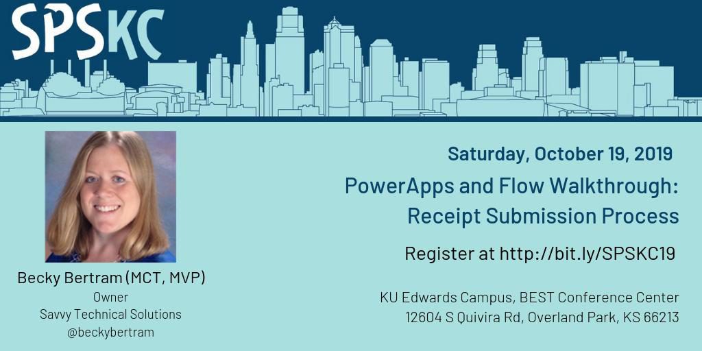 In my session I’ll be walking through a real-world scenario of a PowerApp that allows you to take a picture of your receipt and then save it to a SharePoint library, then use a Flow to copy your entry to a protected location in another SharePoint site. If you’re a novice PowerApps and Flow user, this will give you a good example of how the two can be used together.